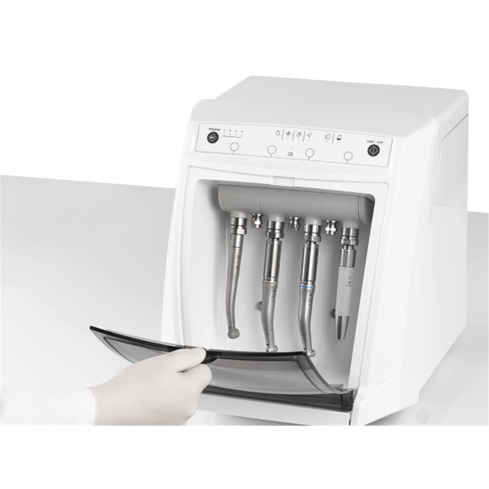 Crucial tools for any dentist, these instruments also represent one of the biggest cross-contamination risks. When one of these rotating devices slows down or stops, back-siphoning effects can suck liquids inside the handpiece, hence the need to perform cleaning. Instruments cannot be sterilised without thorough cleaning being performed first. Disinfection, and equally important, lubrication, should happen after each use. This procedure is also essential for maintaining instrument quality.