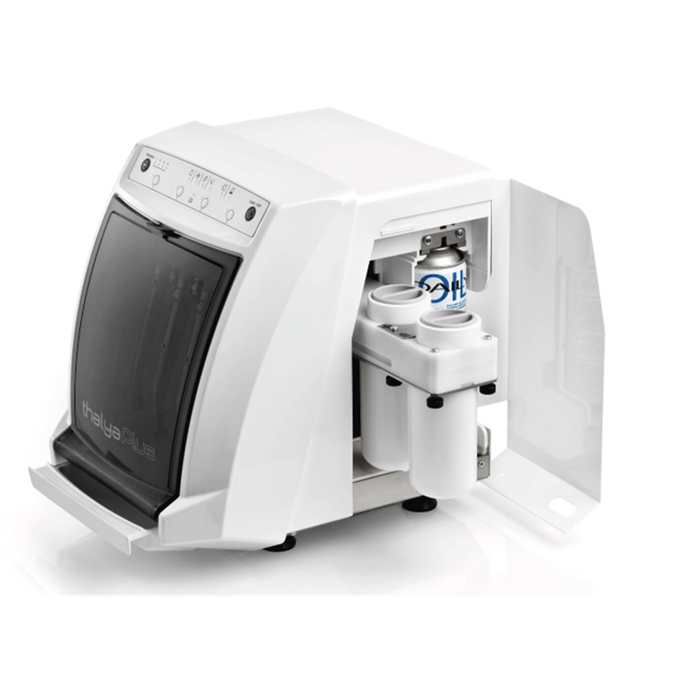 Proper use of the Thalya+ requires detergent and disinfectant. The machine is equipped with two convenient integrated tanks on the right-hand