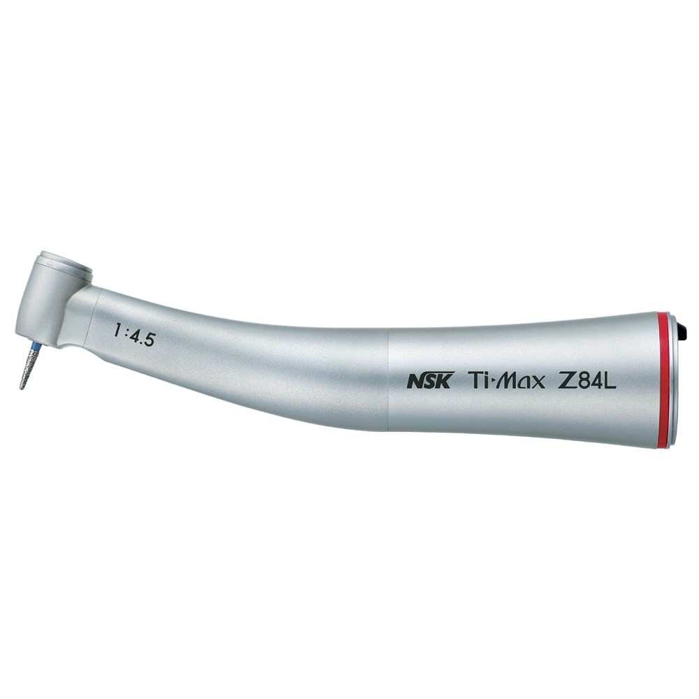 NSK Ti-Max Titanium Contra Angle Handpiece - Z84L - Mini Head - 1:4.5 - Red Band - Push Chuck - Optic - Internal Spray