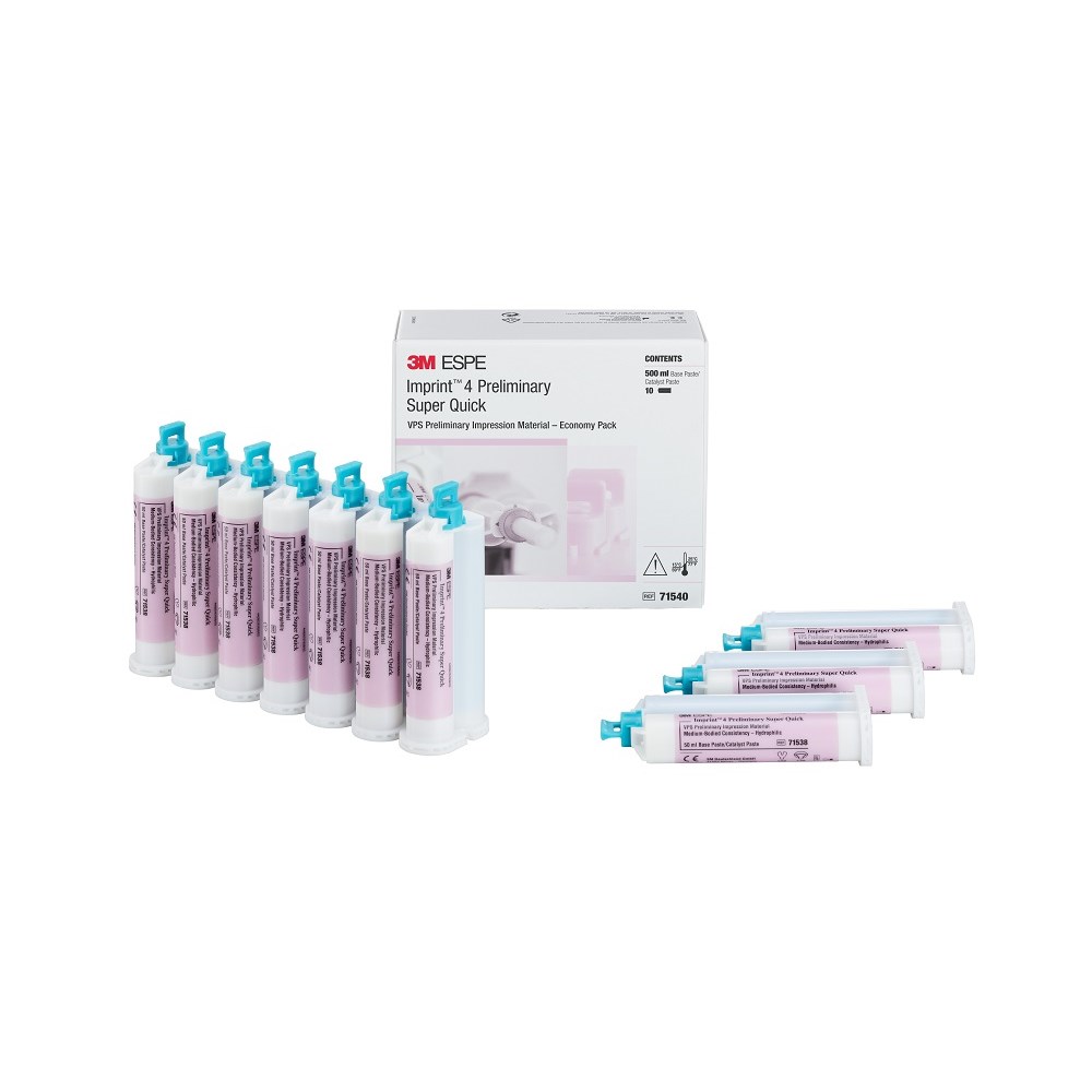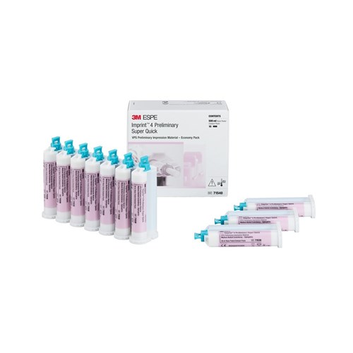 Imprintâ„¢ 4 Preliminary Super Quick VPS Preliminary Impression Material is ideal for all alginate indications but features easier handling & accuracy compared to alginate, a fresh mint flavour and easy to read colour (pink) and is scannable with chairside & standalone scanners.