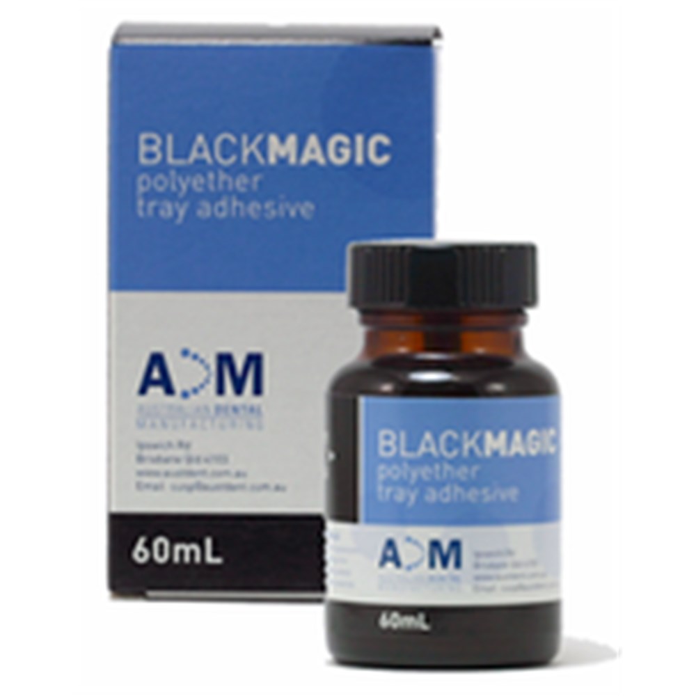 Black Magic is a polyether tray adhesive suitable for all types of polyether impression materials. Black Magic has minimal toxic solvents and can be used with Impregum or Permadyne Impression materials. Black Magic comes with a brush integrated within the cap. This brush can be easily removed and