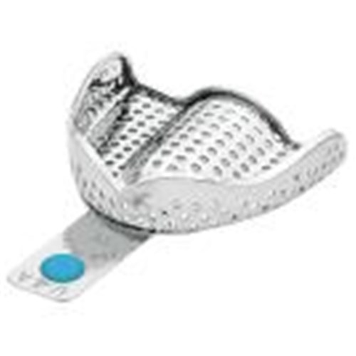 Upper perforated stainless steel impression trays - PERMA-LOCK ANATOMIC with retention rim.