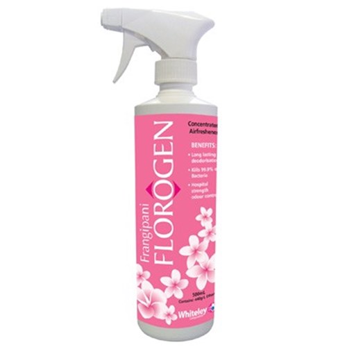 Florogen Frangipani is available in 5L and 500mL spray bottles.