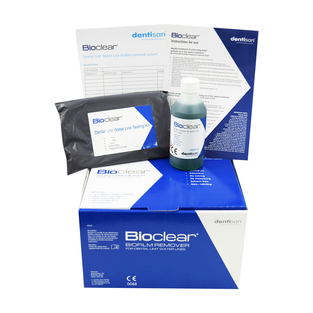 A ready-to-use solution that requires no mixing, Bioclear is a weekly treatment for cleaning dental unit waterlines (DUWLs) to prevent build-up of biofilm. Bioclear has proven efficacy removing biofilm, enabling waterlines to maintain water quality of <200 cfu/ml.