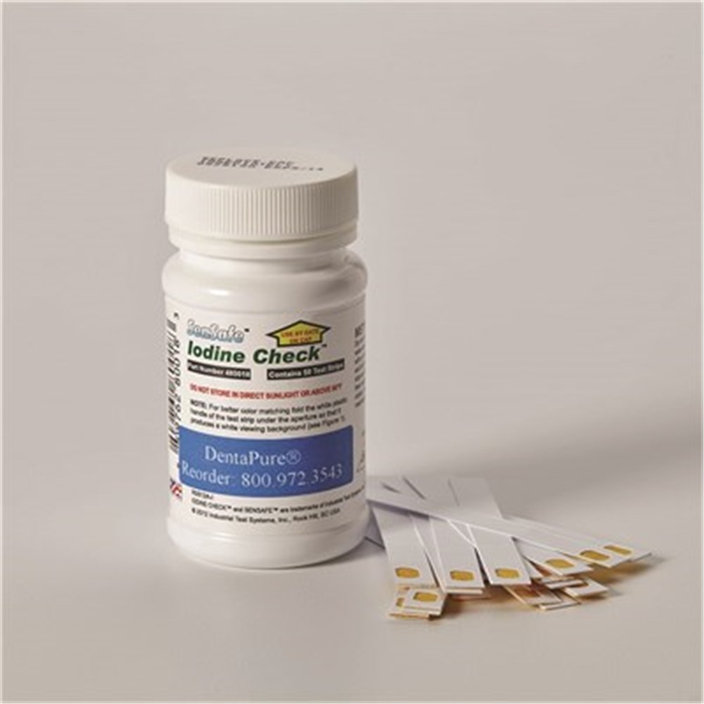 • Test strips may be used to verify adequate levels (higher than 0.5 ppm) of iodine release