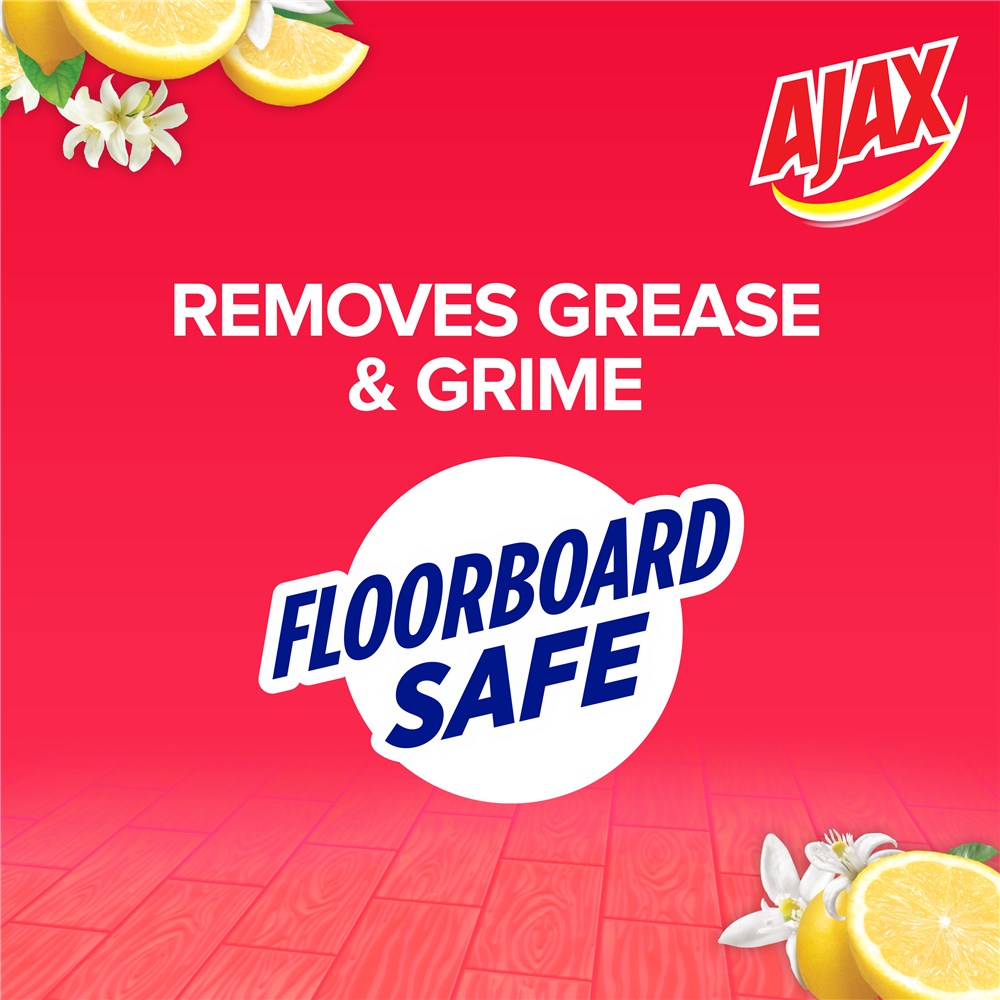Ajax Citrus Burst Floor Cleaner has been specially developed to clean your floorboards. Use with confidence on varnished wooden floorboards, slate, tiles and other hard washable surfaces.