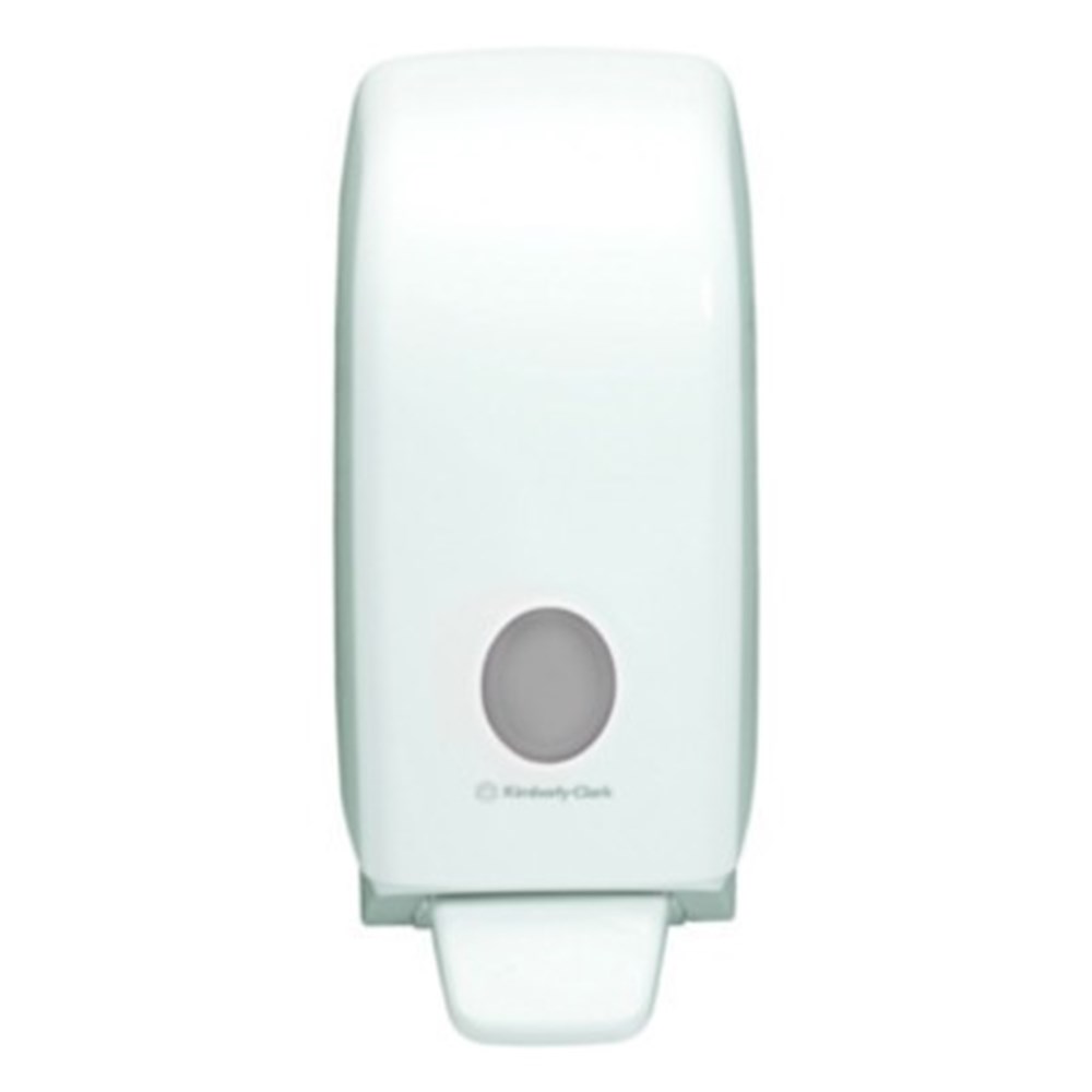 Kimberly-Clark Professional® soap dispensers promote hand hygiene across the workplace whilst providing comfort and care for the user with every use. This high capacity dispenser holds 1000ml cartridges of either foam or liquid soap and helps to reduce costs through efficient dispensing. The quick-fill dispenser also features a viewing window that enables you to check soap levels before refilling for more efficient washroom maintenance. The dispenser has a contemporary design with a white, high-gloss, easy clean finish. This dispenser is endorsed by HACCP International. Kleenex® soap dispensers, by Kimberly-Clark Professional®, form part of a wider range of washroom products designed to create a safer, healthier and more productive workplace.