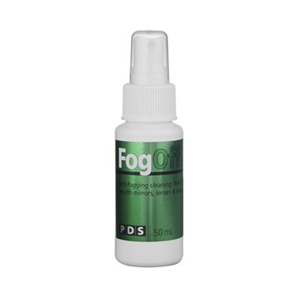PDS Fogoff Solution is a long lasting, mint scented anti-fogging and cleaning fluid for mouth mirrors, safety glasses and loupes. PDS Fogoff help with cleaning and reducing condensation fogging on spectacles, dental mirrors and all shiny glass and plastic surfaces.