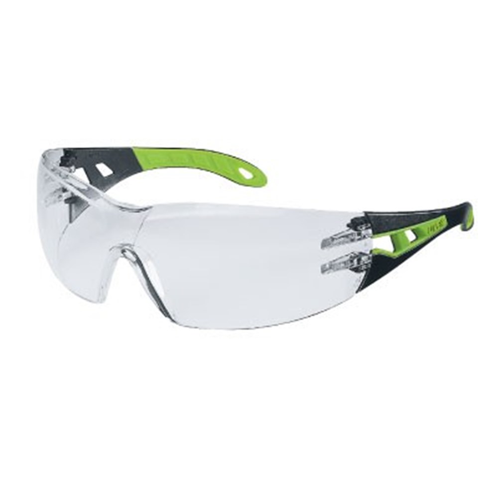 Uvex Pheos Safety Glasses - Anti Scratch/Fog - Clear Lens - Black Green Arms