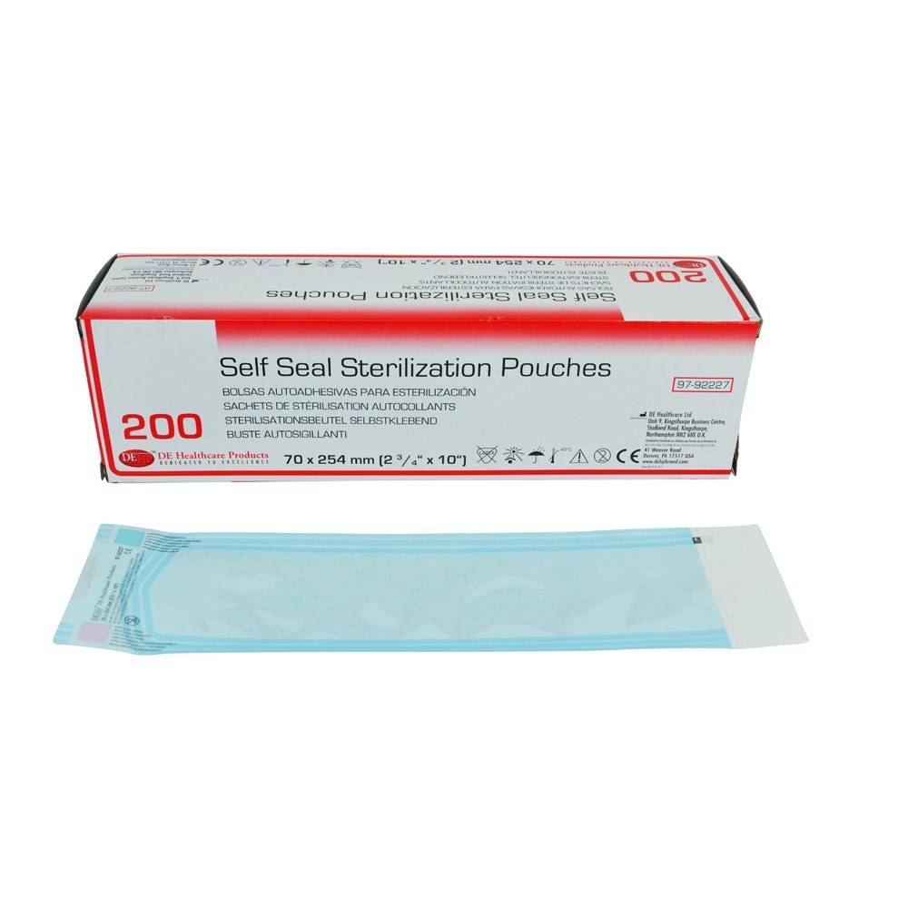 DE Self Seal Sterilisation Pouches - 70mm x 254mm, 200-Pack