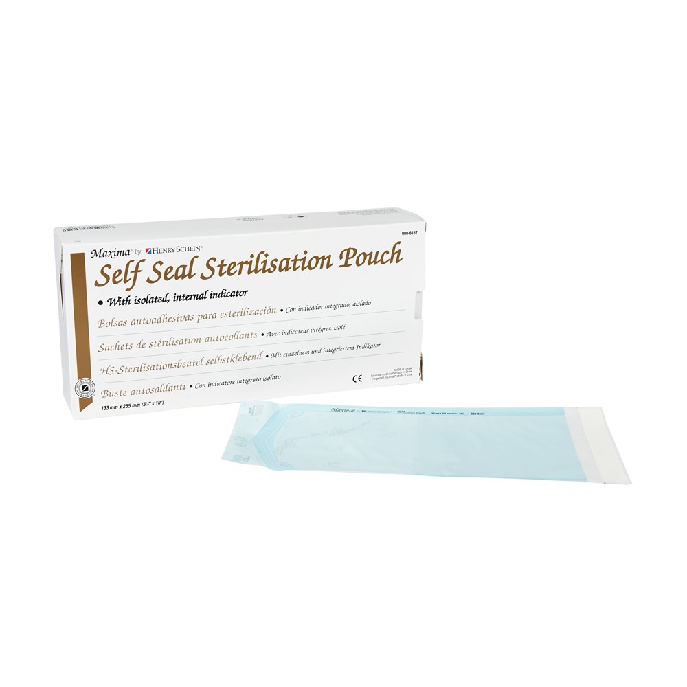 Maxima Self Seal Sterilisation Pouches are for packaging dental instruments prior to sterilisation and storage once sterilised. These pouches have an external and isolated internal indicator for accurate reading. Designed to indicate that instruments have undergone sterilisation.