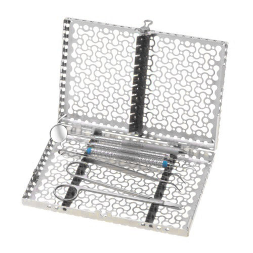 Cassette holds 10 instruments. Exterior Dimensions 5.5" x 8" x 1.25" (140 mm x 203 mm x 32 mm).