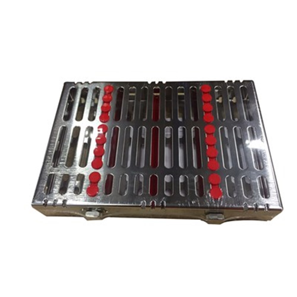Cassette holds 10 instruments. Exterior Dimensions 5.5" x 8" x 1.25" (140 mm x 203 mm x 32 mm).