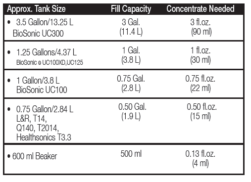 gke Cleaning Process Indicator for your Ultrasonic Bath using BioSonic Enzymatic Ultrasonic Cleaning Solution: Optimal dosage would be at least 9.5 ml / L with an optimal cycle time of 15 minutes with the Green