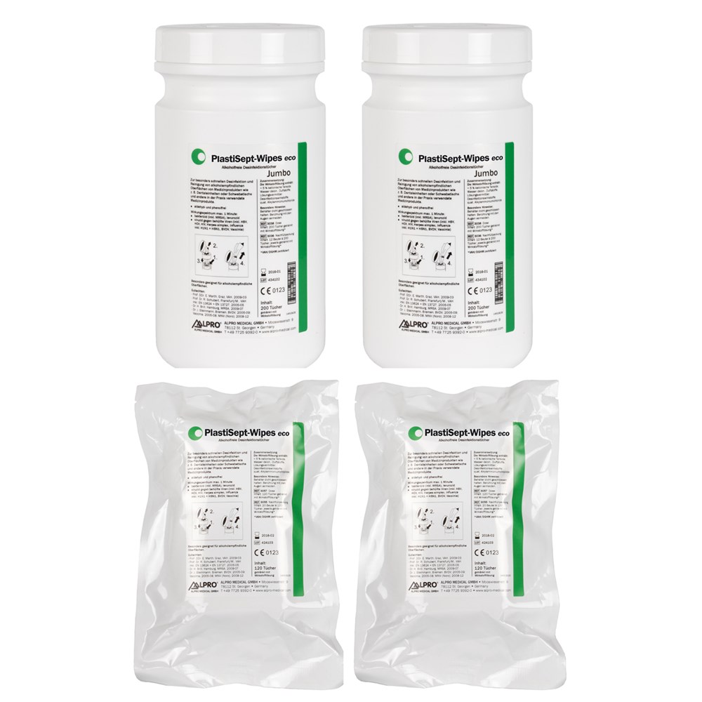 Alcohol-free wet wipes for the cleaning and disinfection of sensitive surfaces of medical devices such as medical and dental units (incl. upholstery and suspension tables) and X-ray machines particularly with acrylic glass or metal surfaces. Efficacy in 5 minutes