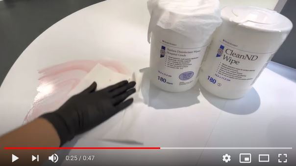 • For use on medical devices. Surfaces should be wiped thoroughly with a damp, soft cloth after daily use to remove excess residue build up