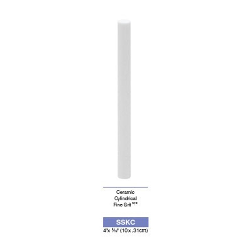 The Cylindrical Ceramic Sharpening Stone, Fine Grit, is used for sharpening curved edges and facial surfaces of scalers.(10 x 0.3cm)