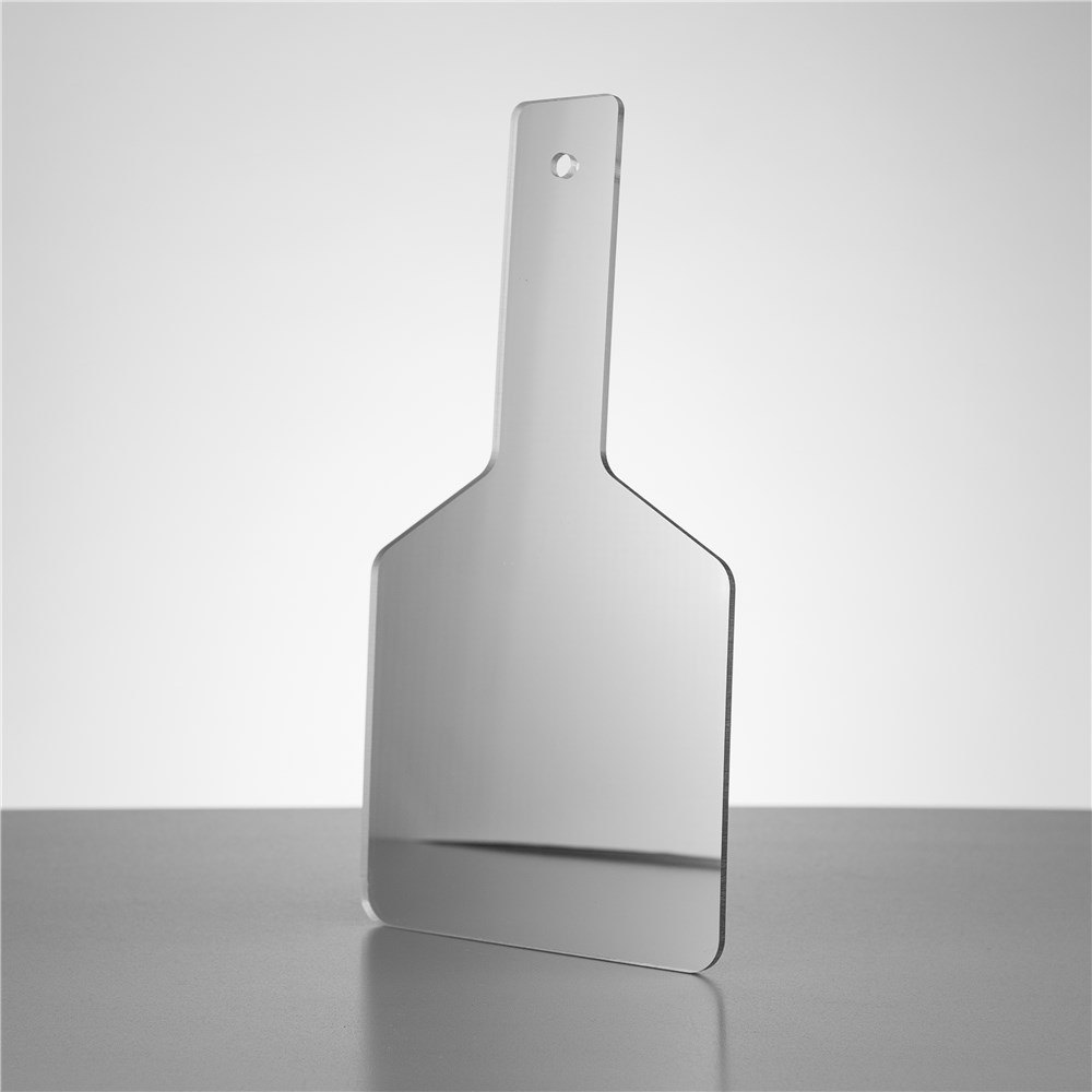 Handy lightweight viewing mirror for patients. Easy to disinfect because the paddle is smooth without crevices or edges.