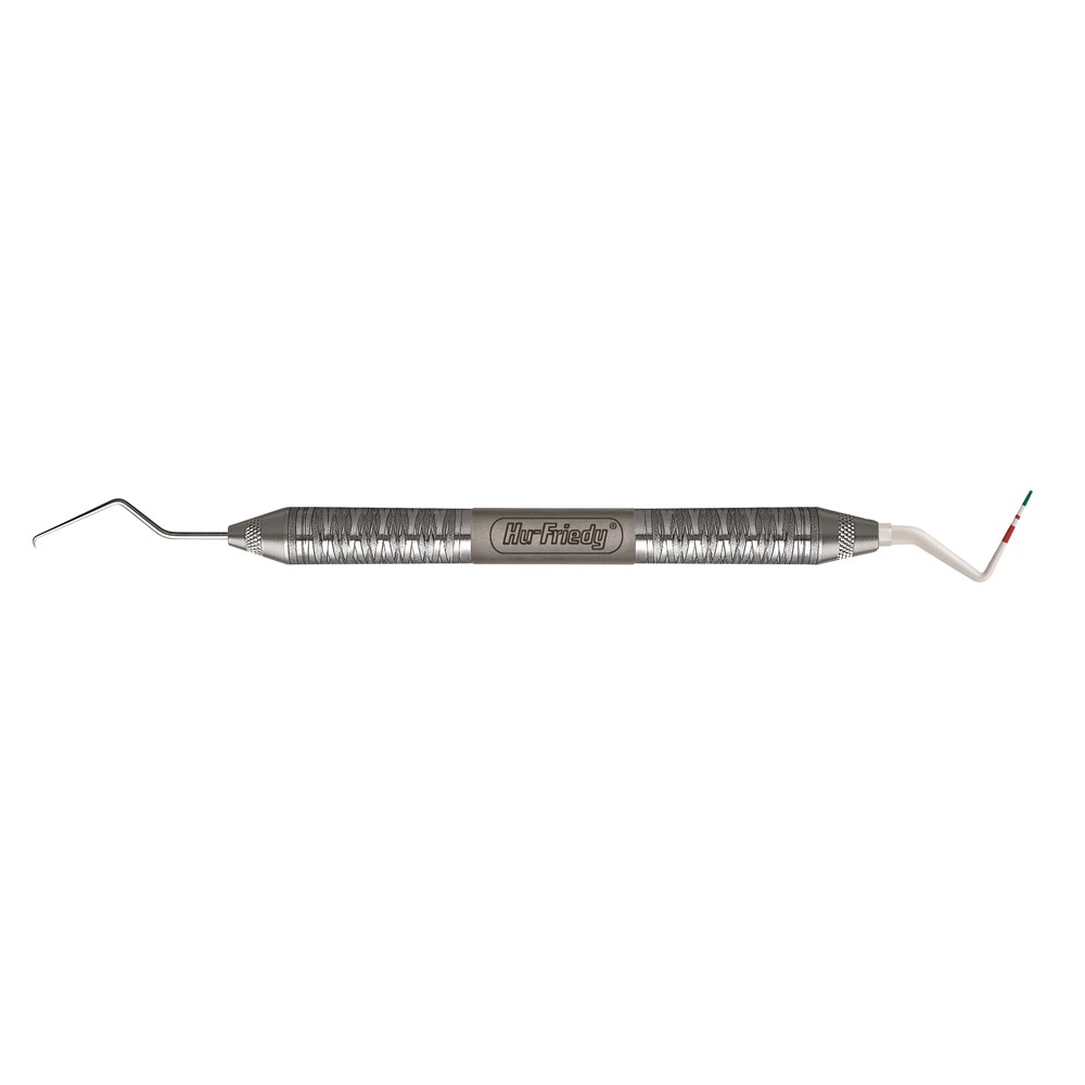 TU17 Explorer/Colorvue™ Probe HandleA double-ended instrument with an explorer on one end and a probe on the other, an Expro is excellent for dental examinations and charting. *Colorvue™ PerioScreen tips sold separately.
