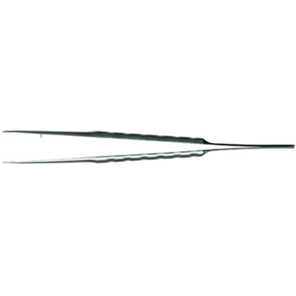 Microsurgical tissue pliers used to grasp and stabilize soft tissue. 18mm