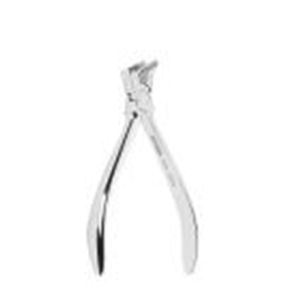 Distal end cutter with safety hold designed to cut hard wires and hold the loose distal end, preventing damages to patient oral tissue.