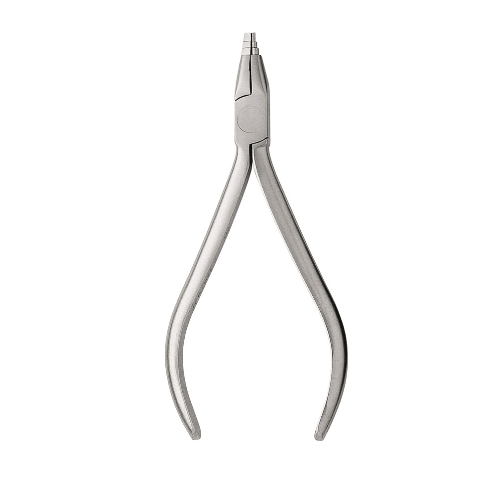 Provides optimum accuracy and precision in forming and closing loops with one cylindrical three-step beak and one triangular beak, on wires up to .022" x .025" (.56 mm x .64 mm).