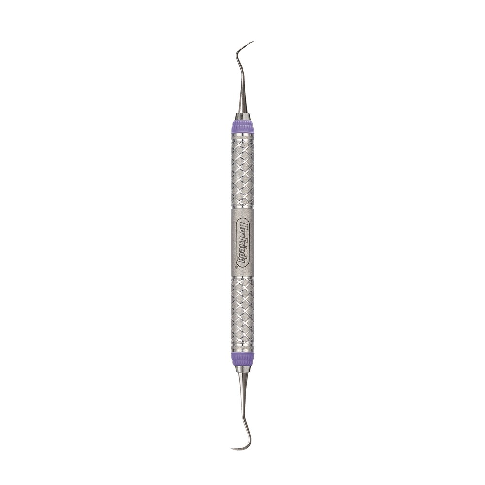 An elongated disk end for anterior lingual stain and calculus removal paired with a larger H5 sickle – a thin curved blade for interproximal and cervical anterior areas. EverEdge™ 2.0 scalers are the sharpest and longest-lasting scalers on the market. Using a superior heat treatment process, enhanced finishing process and an optimized steel, EverEdge 2.0's edges are scientifically measured to be over 72% sharper than the next closest competitor.