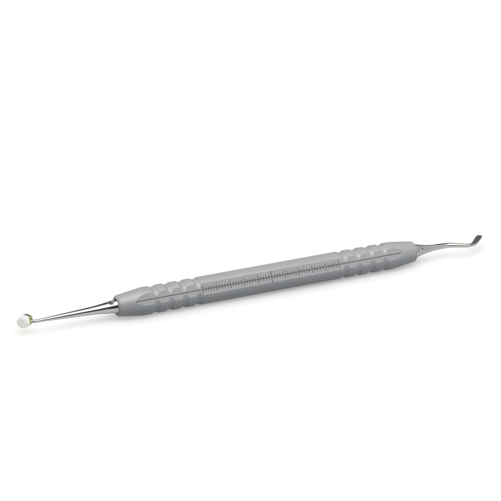 Modelling instrument with special foam pad attachments to facilitate the non-stick placement of anterior composite materials. The highly synthetic foam, which come in two sizes, optimally adjust to the tooth shape and allow fillings to be smoothly contoured.