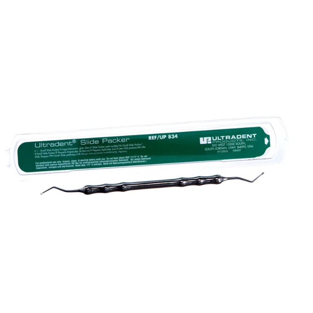 These thin, non-serrated slide packers are designed to place and compress Ultrapak™ knitted cord using a sliding action as the clinician circles the prep.