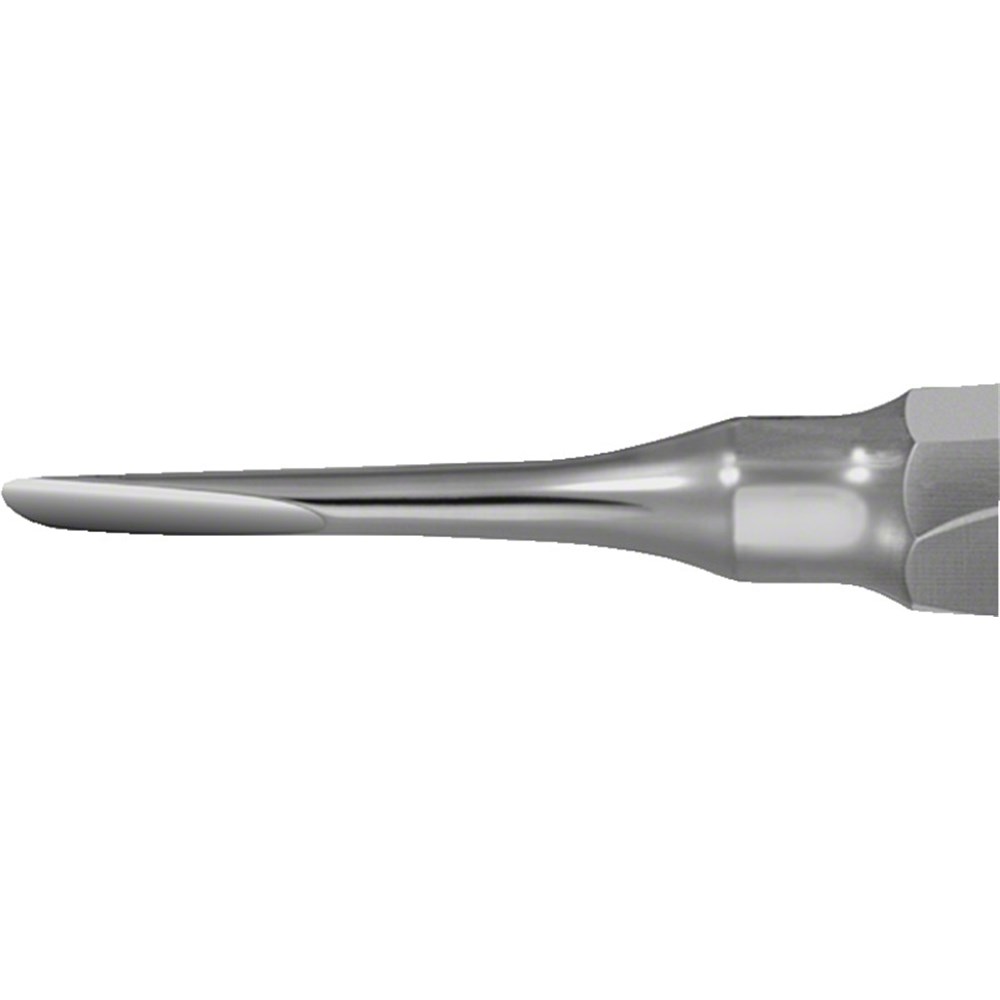 • Very Slender Working Endos • The Working ends are available in 0.5mm steps from 2.0 to 5.0mm • Gouge-like working end • Handle with depression for thumb • Easy Access to roots even in areas difficult to reach • Great sensitivity during operation • More gentle clearance of the alveoli • Better guidance • Better grip