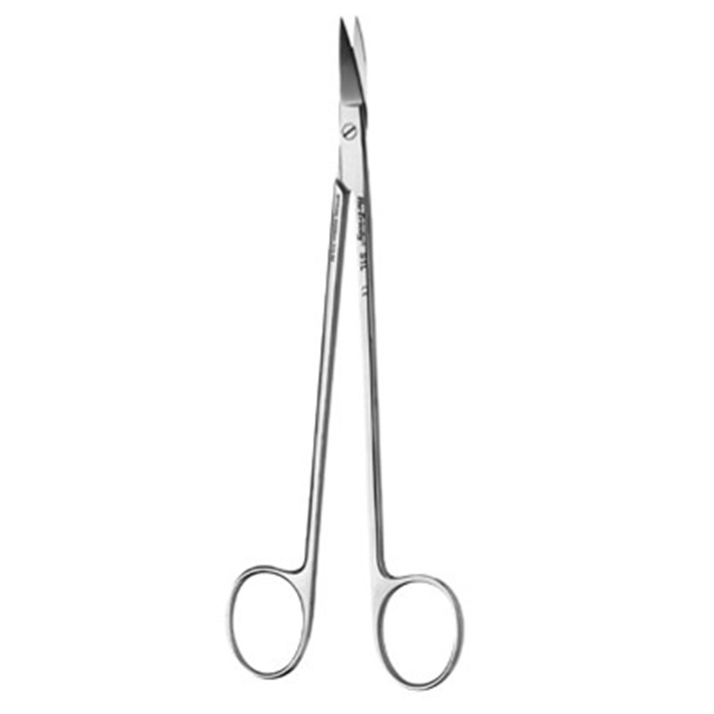 Kelly Curved Standard Series scissors with 1 serrated blade used for trimming tissue or cutting sutures.