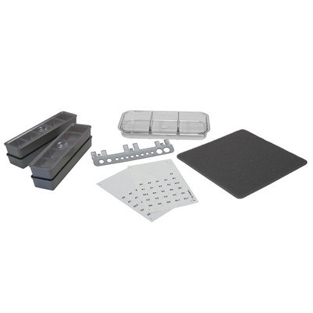 •   Purchase a procedure tub and safe-lok to complete the kit Includes: Tub liner 4 x long tub cup and cover 1 x divided slide tray 1 x capsule clip on holder Shade label sheet 2 pack
