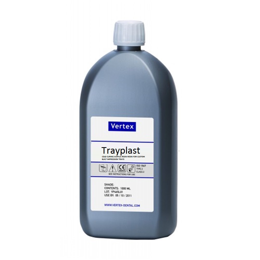 Vertex Trayplast is a self polymerizing acrylic for individual impression trays. Pouring time (at 22 ° C) Mix in a silicone bowl until a dough is reached Dough time (at 22° C) use directly Curing time 10 minutes at 55°C and 2.5 bar