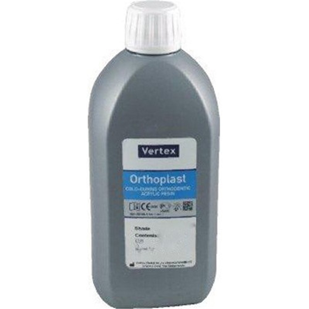 Vertex Orthoplast is a self polymerizing acrylic for orthodontic appliances. Its unique grain structure makes this acrylic suitable for the spray-on technique. Pouring time (at 22 ° C) 9 minutes Dough time (at 22° C) 6 minutes Curing time 20 minutes at 55°C and 2.5 bar