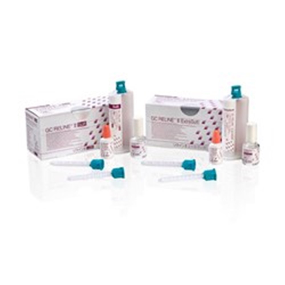 RELINE II is an A-silicone material providing comfort and long-lasting elasticity for indications of sharp or bony alveolar ridges and undercuts. It is used to adapt dentures after extractions or implant surgeries.