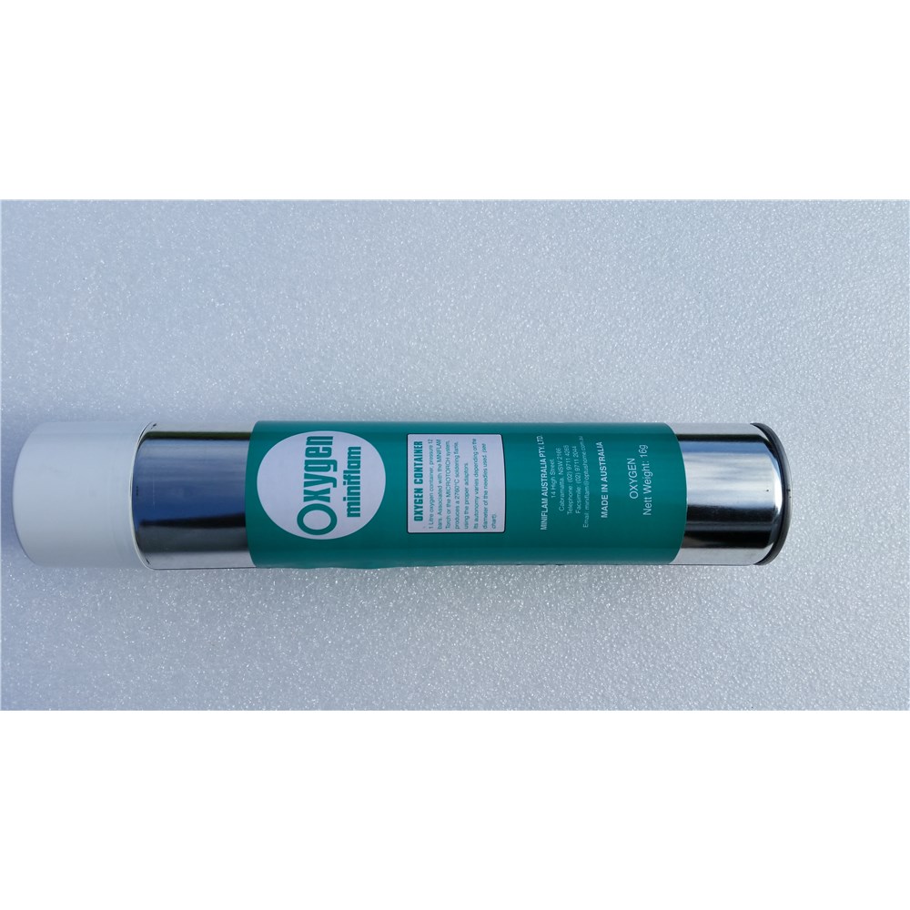 Manufactured in Australia Pty Ltd the Miniflam Oxygen cylinders are specifically made to be used with the Miniflam Microtorch range.
