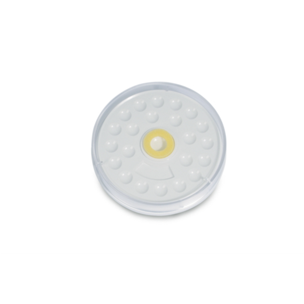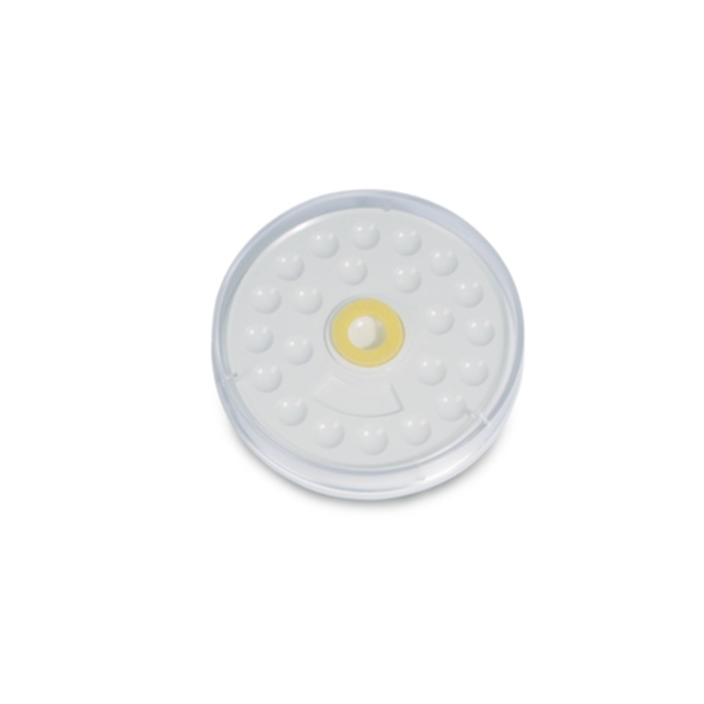 Akzent Plus mixing palette/ plate, circular piece made of quality acrylic with 21 wells/indentations for mixing all powder stains and glaze material. One large depression as a liquid reservoir with small ring-shaped sponge.