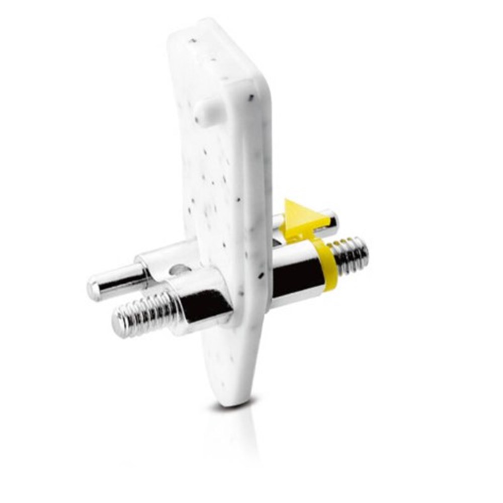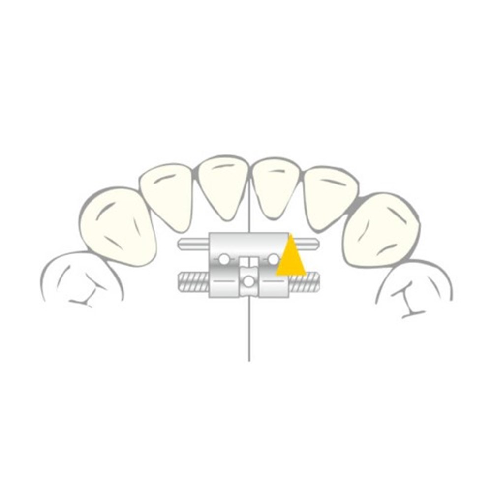 Skeletal expansion screw with bright yellow directional arrow for transversal expansion of the lower jaw.