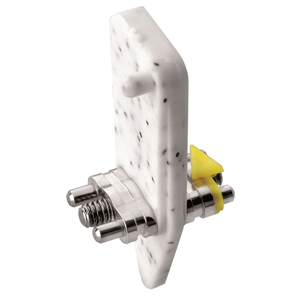 Mini Expansion screws used for transverse and distal expansion of the lower jaw. Notches on guide pins prevent screws from exeeding maximum expansion. Light yellow directional arrow. Vector 100 Expansion 5.5mm, 6.2B x 3.0H x 12L x 10