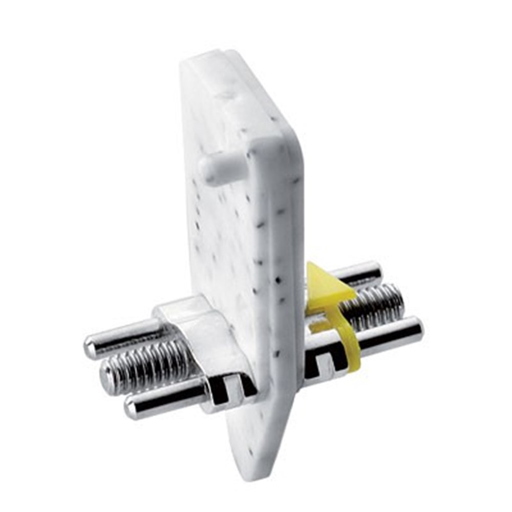 Medium Expansion screws used for transverse and distal expansion of the lower jaw. Notches on guidm pins prevent screw from exeeding maximum expansion. Light yellow directional arrow. Vector 140 Expansion 6mm, 7.5B x 3.3H x 12L x 10