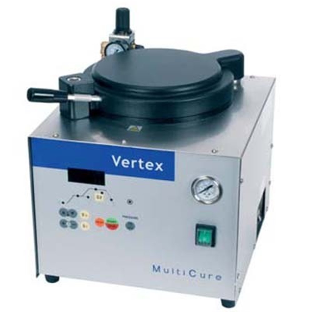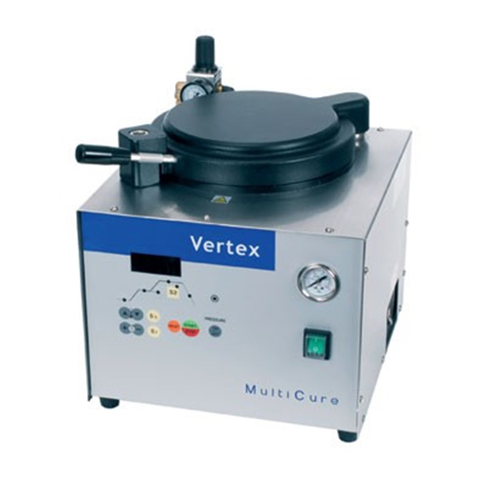 •   Programmable for 2 steps (2 holding steps with 2 different temperatures and times) Hot-curing acrylics, 4 flasks, 100 °C Cold-curing acrylics, 3 flasks, 55°C, 2.5 Bar Orthodontic acrylics, 9 models, 55°C, 2.5 Bar Crown & Bridge acrylics, (minimum) 93°C, 6.0 Bar Multicure Unit Complete
