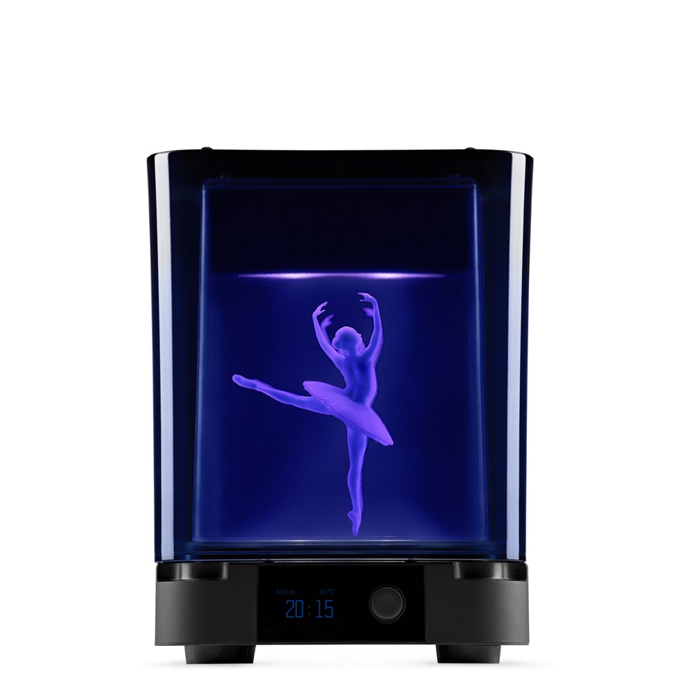 The heating system preheats the chamber to get parts ready for optimun post-curing. Once the chamber is heated 13 LEDs trigger the post curing reaction, bringing parts to their maximum mechanical properties.
