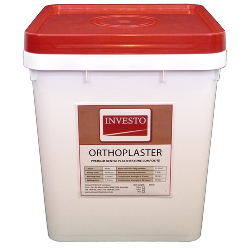 Investo Ortho Plaster is a premium dental plaster/stone composite. It features the strength of stone and the flexibility of plaster. It is ideal for orthodontic study models, is easy to mix and pour, and sets smoothly.