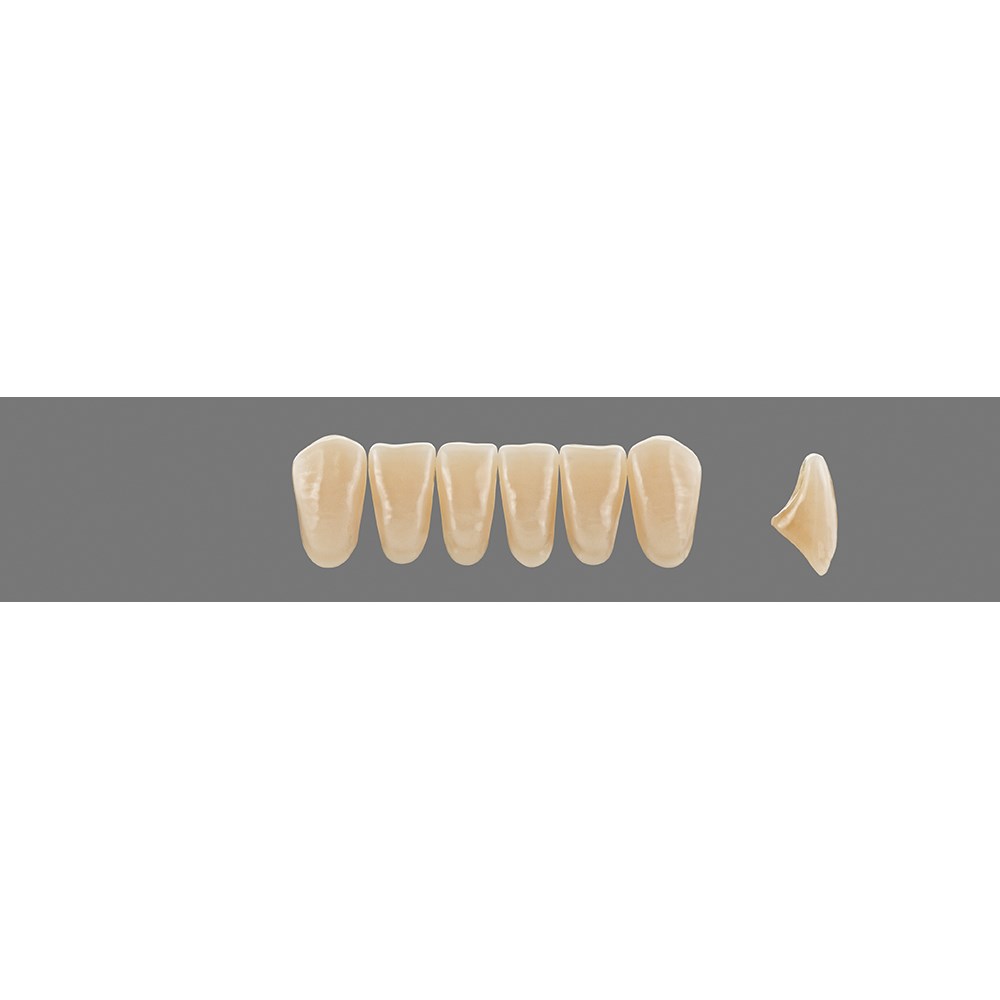 Basic anterior teeth made of HC polymer material for solid standard dentures.