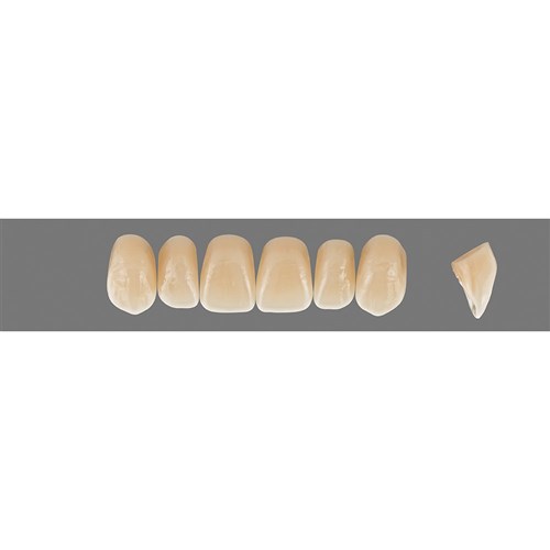 Lifelike, detailed premium anterior teeth made of MRP composite.