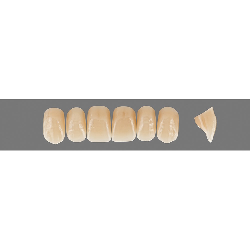 Lifelike, detailed premium anterior teeth made of MRP composite.