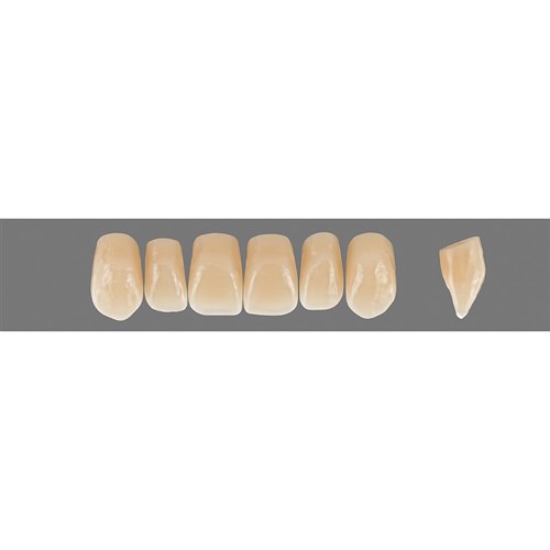 Lifelike, detailed premium anterior teeth made of MRP composite.
