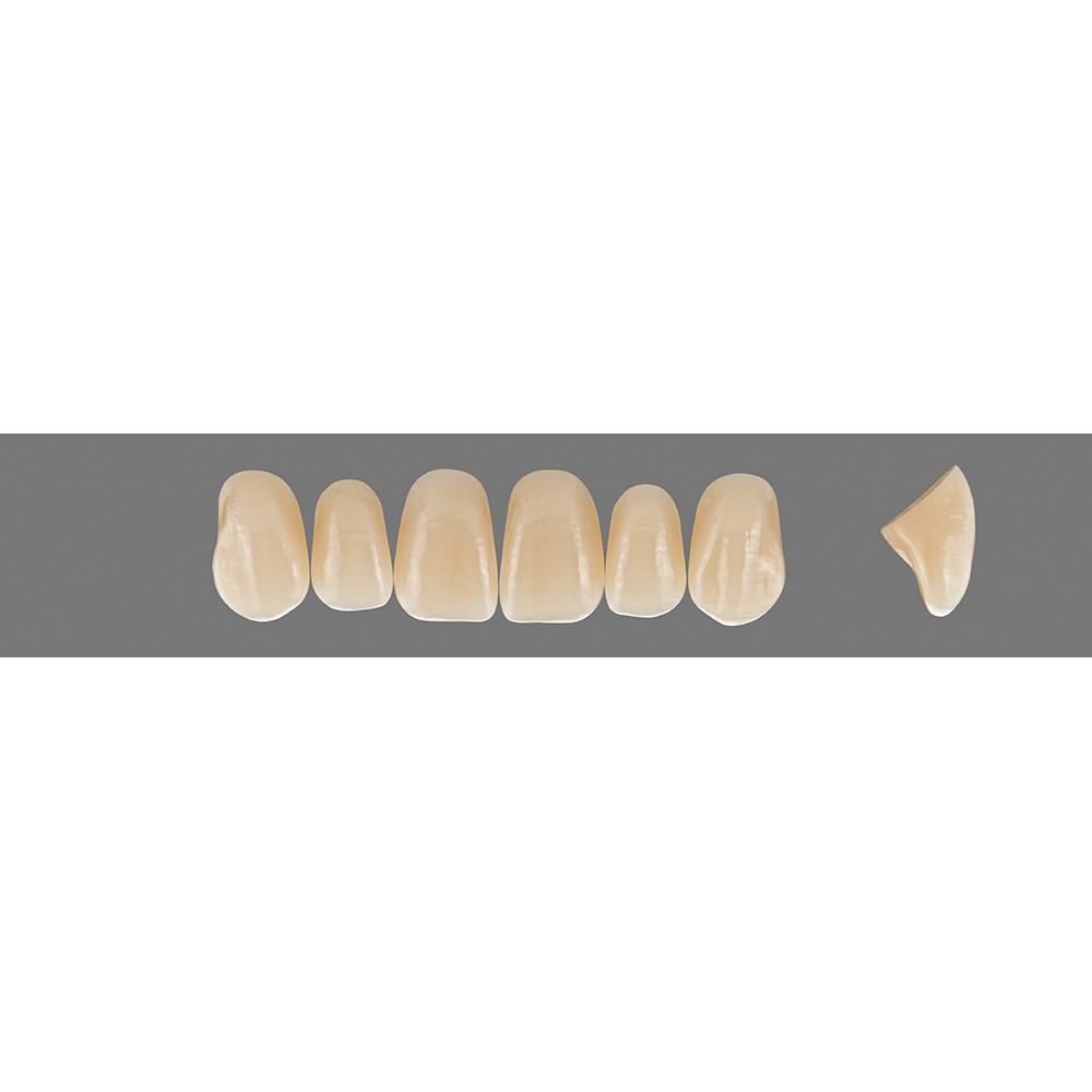 Lifelike, premium anterior teeth made of MRP composite with added translucency.