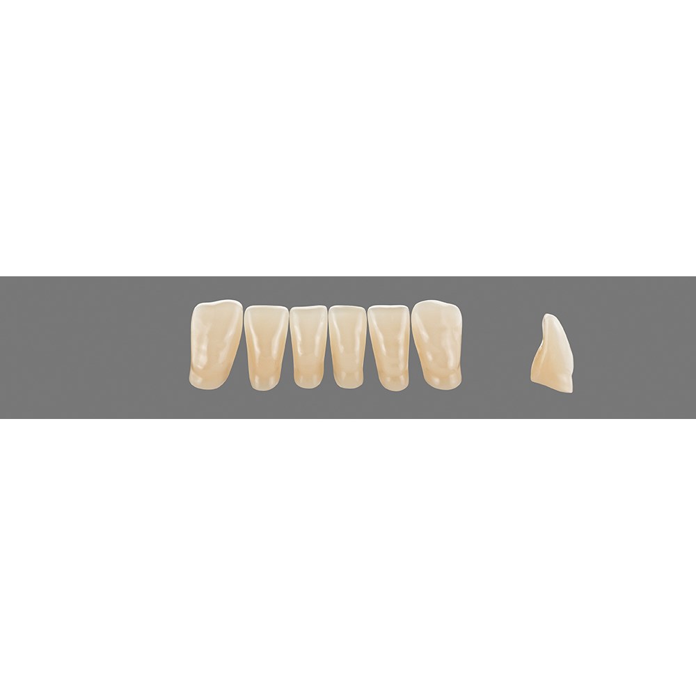 Age-appropriate, universal anterior teeth made of MRP composite.