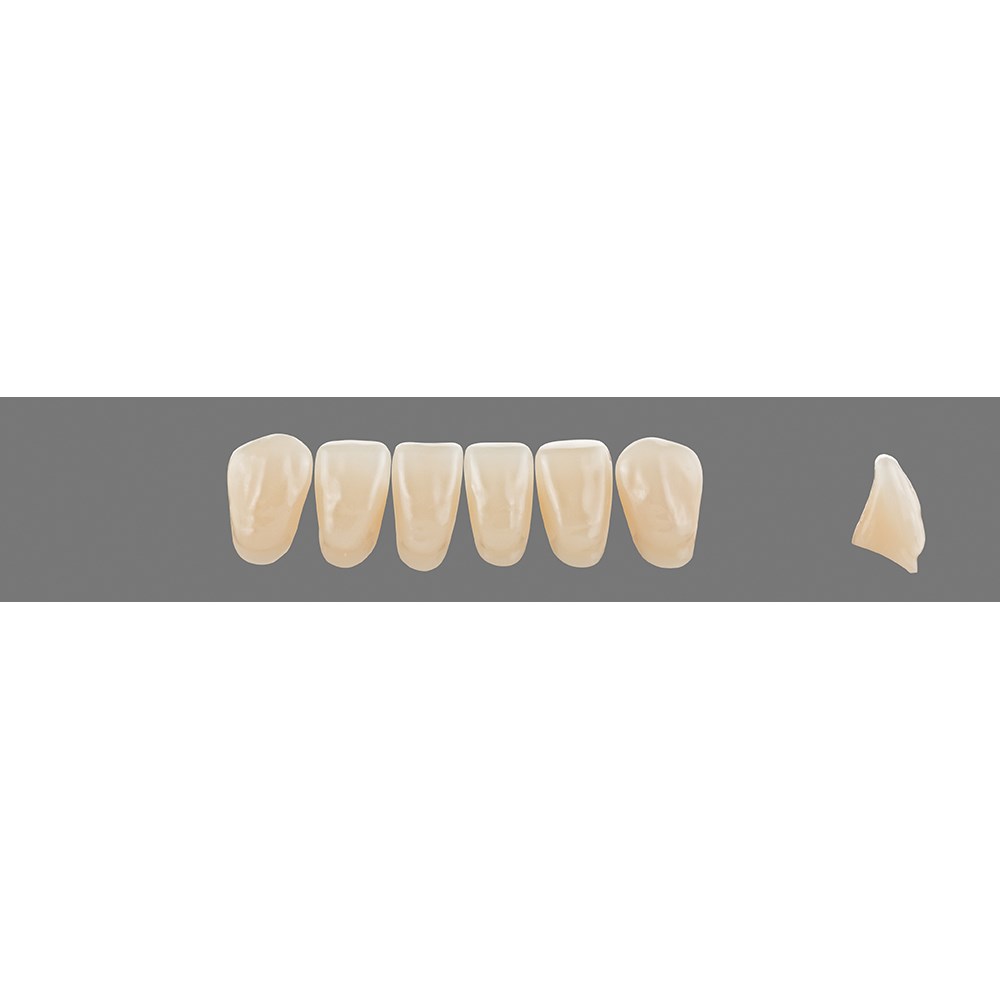 Age-appropriate, universal anterior teeth made of MRP composite.